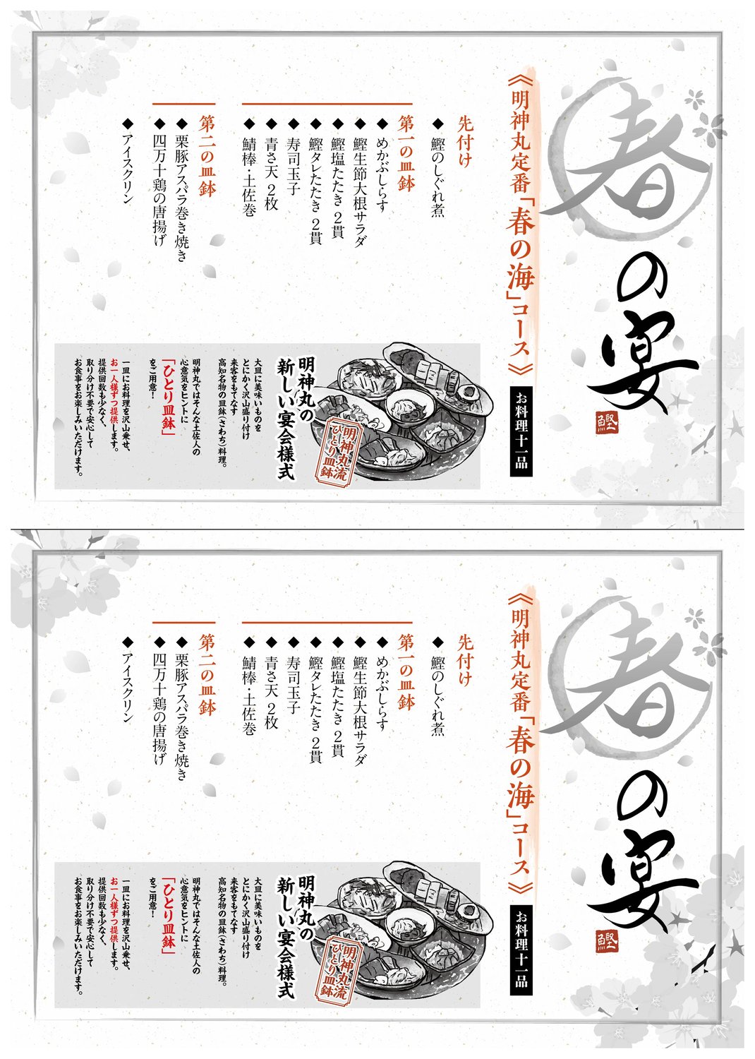 飲食店デザイン / Restaurant design · 2021/04/15 明神丸 春の宴会 client / 株式会社明神丸 tagPlaceholderカテゴリ: works, 明神丸, 飲食店メニュー, 2021
